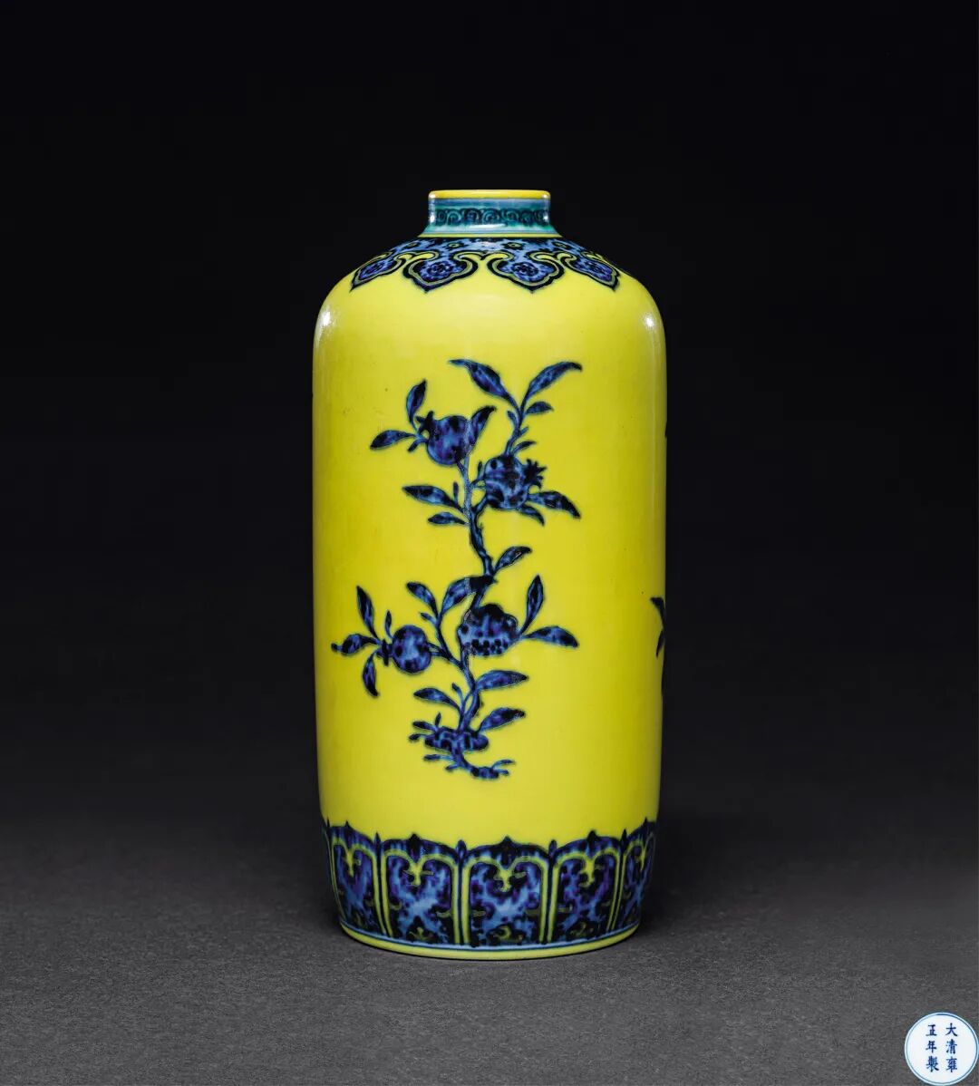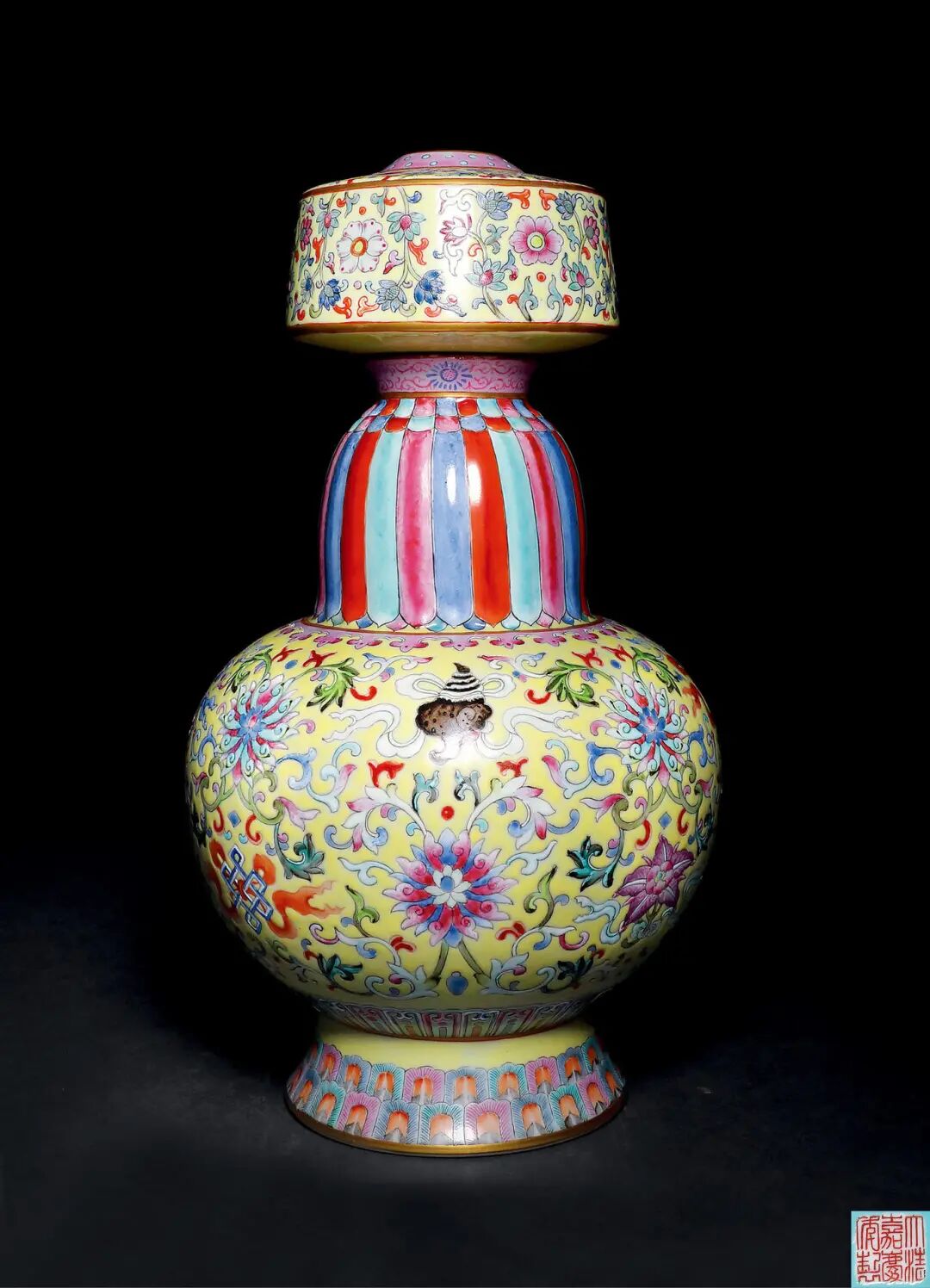 嘉庆 黄地粉彩八吉祥贲巴瓶