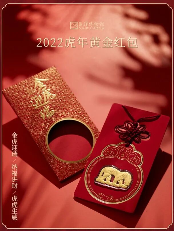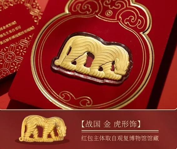 观复文化延续牛年红包的传统,依照馆藏【战国 金 虎形饰】推出2022【虎年黄金红包】。