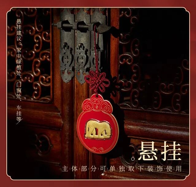 这款虎年黄金红包配以手工编织中国结,可作车挂,亦可挂在床边、绿植、门窗处,给新年添一抹喜庆。