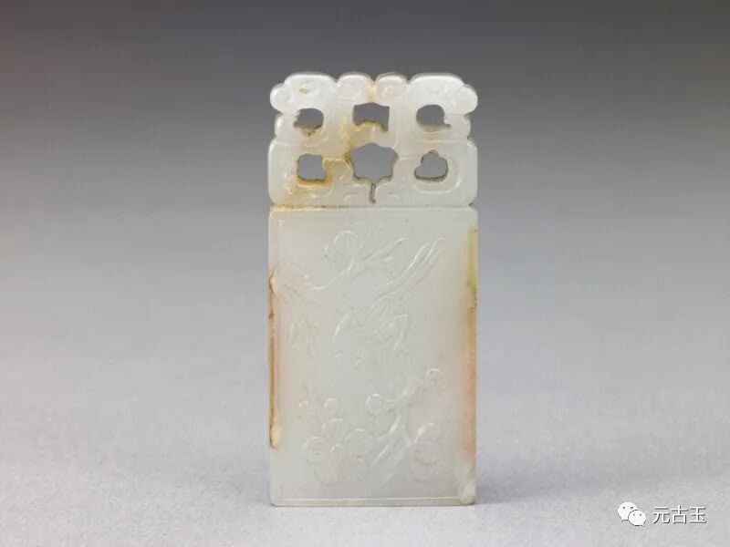 白玉螭纹花鸟子冈牌 明 故宫博物院