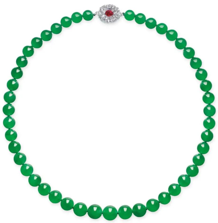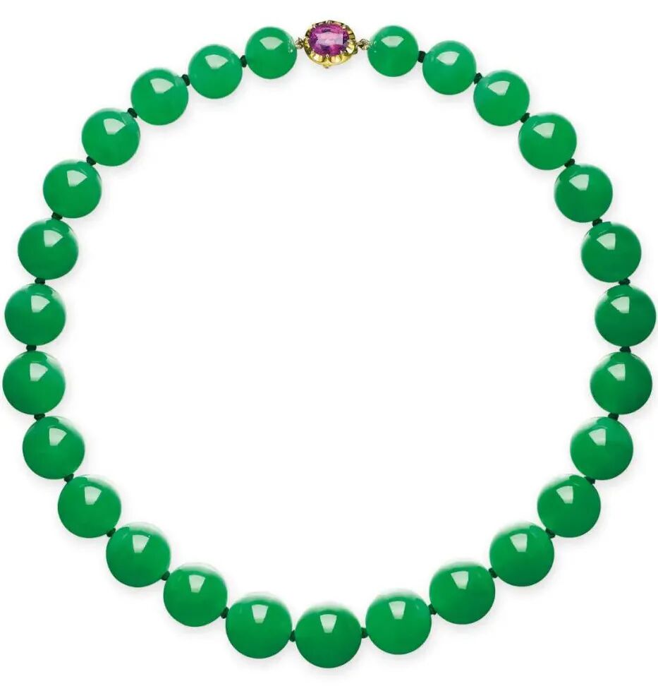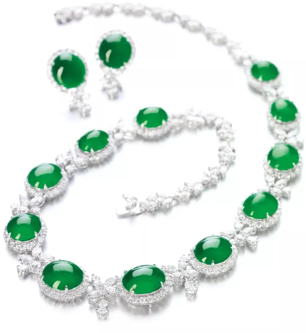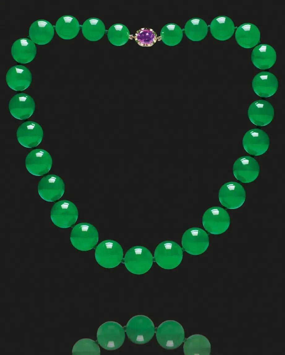 缅甸天然翡翠蛋面配钻石戒指及耳环套装估价HKD 6,500,000 - 10,000,000估价HKD 3,500,000 - 5,500,000佳士得秋拍中,该件拍品以底价2倍多的金额成交,成为全场瞩目焦点!天然翡翠珠項鍊,配粉紅色藍寶石,鑲金,翡翠16.0至12.5毫米,項鍊44.5厘米估价(HKD 8,000,000 - HKD 12,000,000)估价:HKD 3,500,000 - HKD 5,500,000估价:HKD 2,500,000 - HKD 3,500,000成交总额:HKD 2,980,000