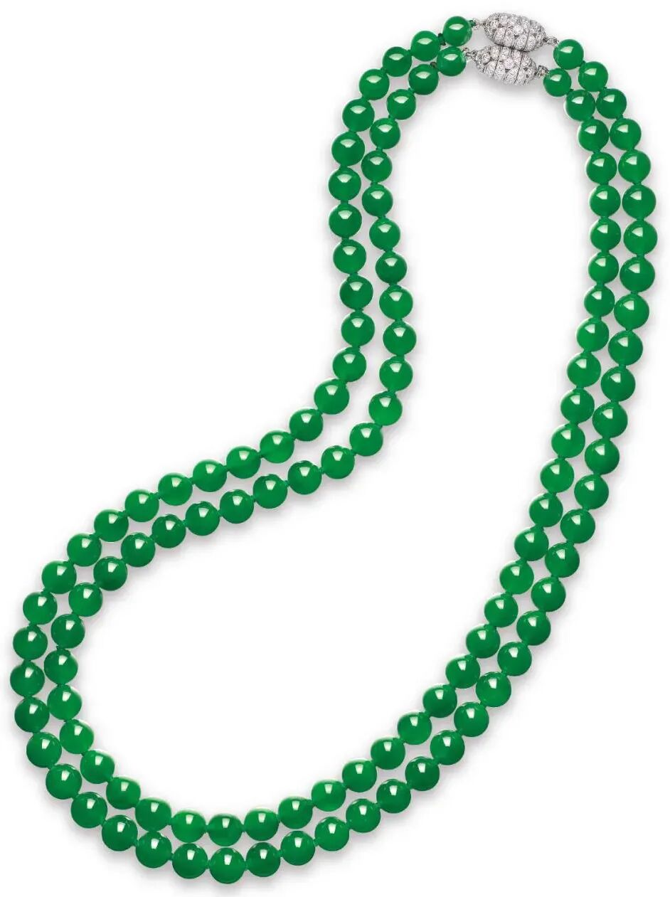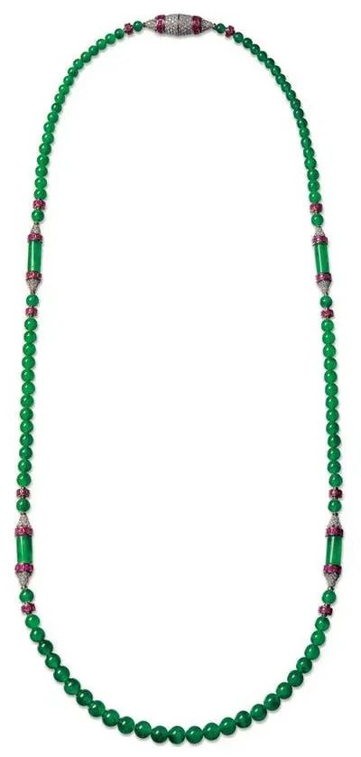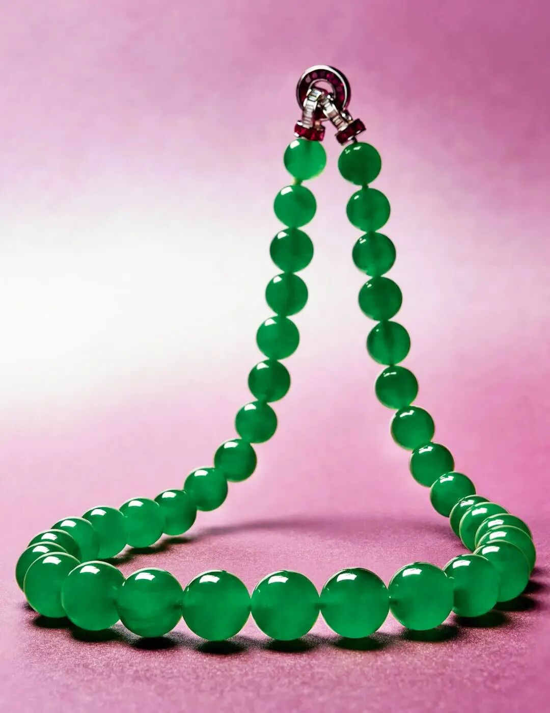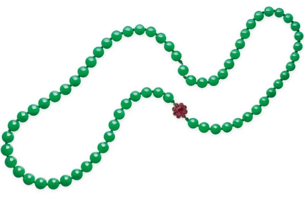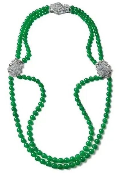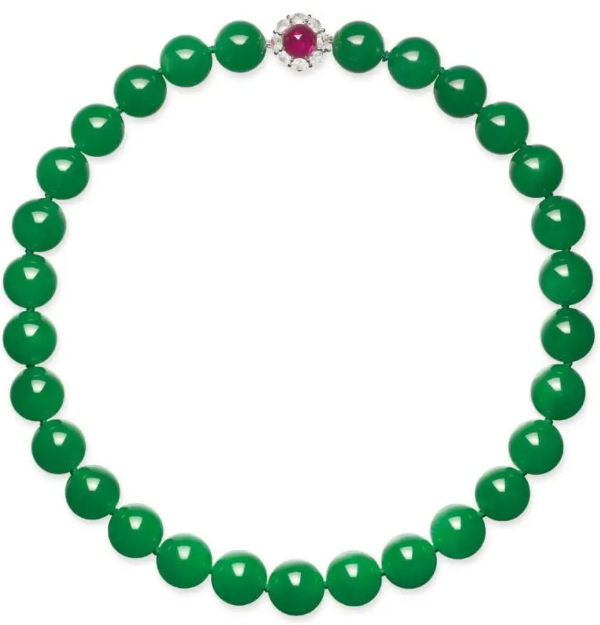 缅甸天然翡翠蛋面配钻石戒指及耳环套装估价HKD 6,500,000 - 10,000,000估价HKD 3,500,000 - 5,500,000佳士得秋拍中,该件拍品以底价2倍多的金额成交,成为全场瞩目焦点!天然翡翠珠項鍊,配粉紅色藍寶石,鑲金,翡翠16.0至12.5毫米,項鍊44.5厘米估价(HKD 8,000,000 - HKD 12,000,000)估价:HKD 3,500,000 - HKD 5,500,000估价:HKD 2,500,000 - HKD 3,500,000成交总额:HKD 2,980,000