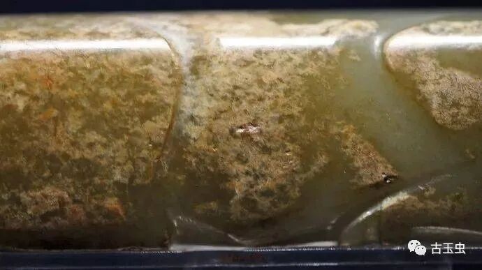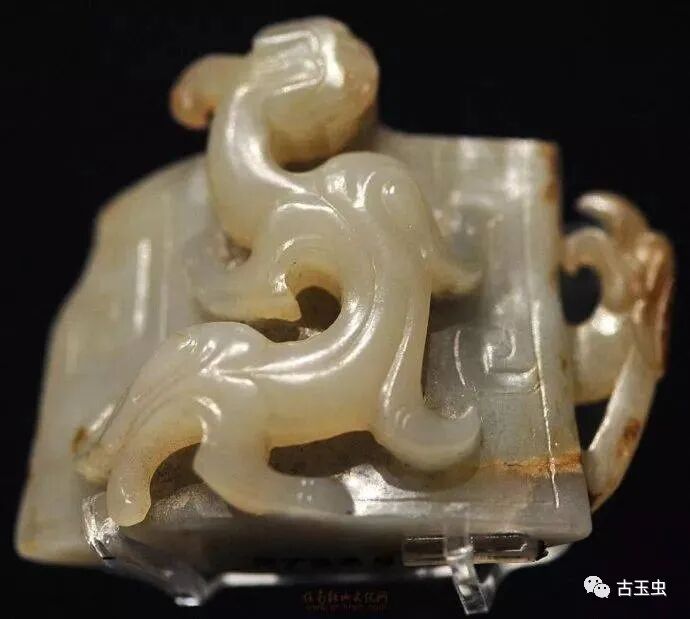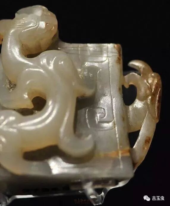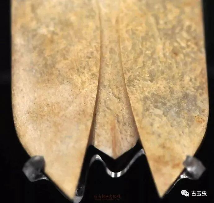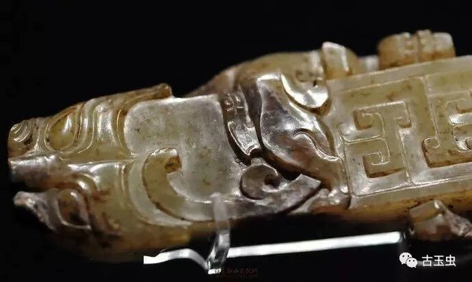 古玉深埋地下,受到周围环境的影响,表面结构水逸失,天长地久,生“熟”的视觉效果。