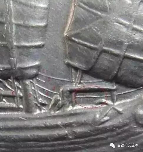 一种可能是:六绳船洋属于后铸或者后加六绳,可以猜测是蒋介石后期在美国铸造的一批,或者是通过修模老模,为区别传统的二十三年船洋而后添加了六绳;这个推断应该不无可能,首先我们可以从六绳船洋的六绳部位的结构出发,推测一下他的来源;(在此借用泉友的一些图片)