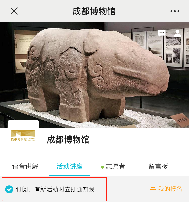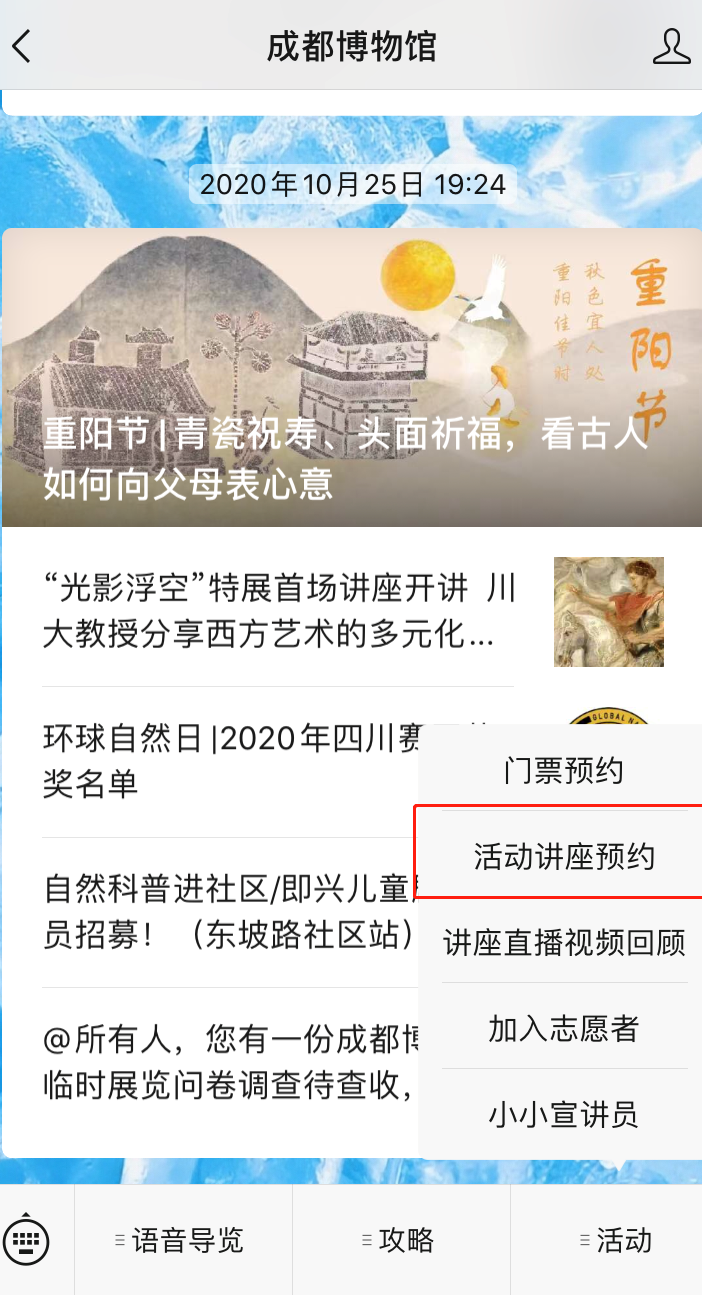 在成都博物馆微信公众号“讲座/活动预约”页面下点击