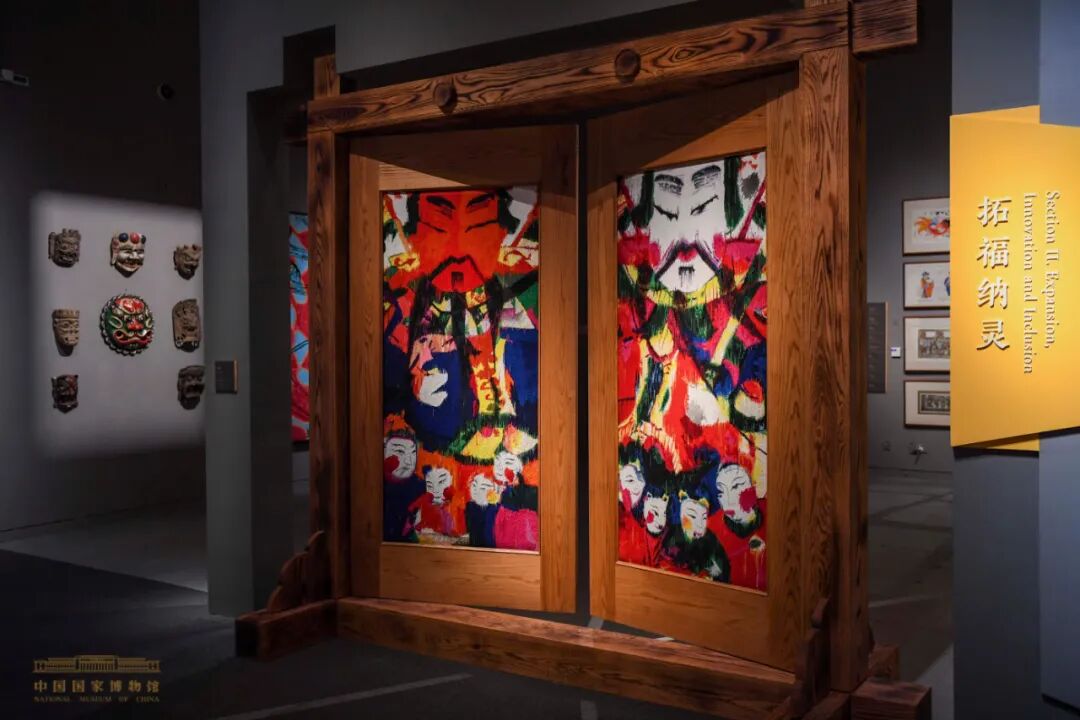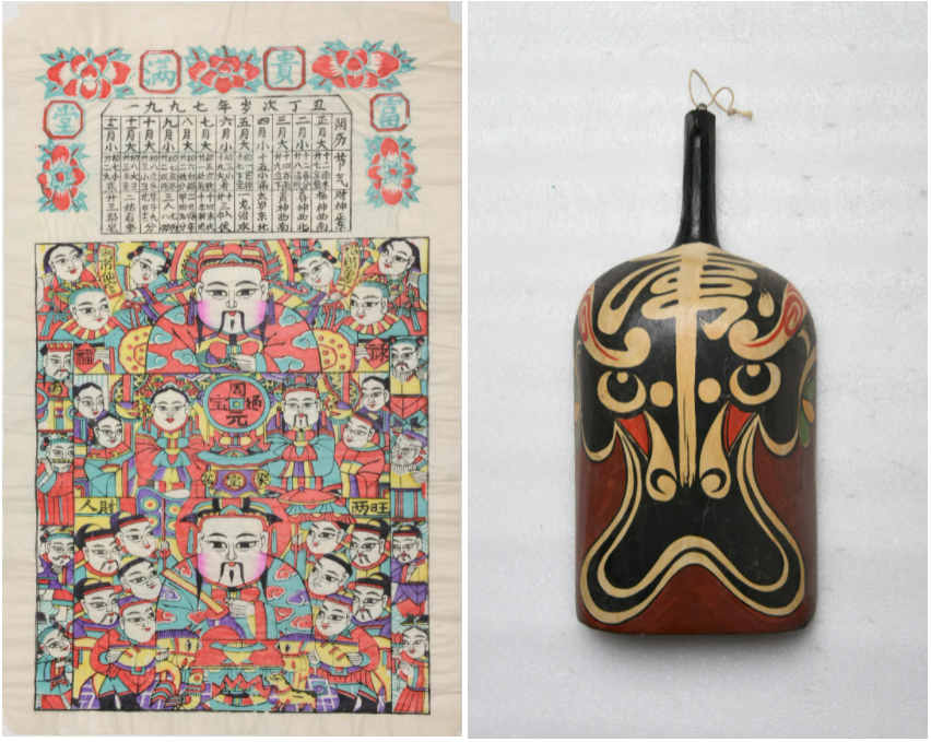 山东潍坊杨家埠年画“灶神”、陕西宝鸡社火马勺脸谱