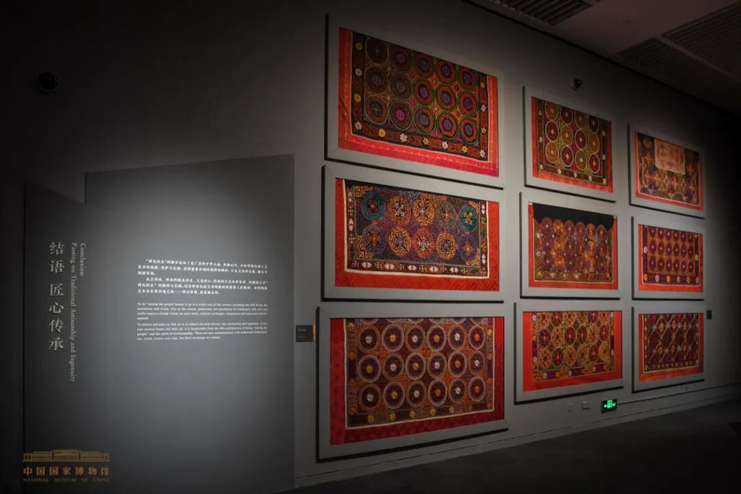 本次展览展出的传统民艺藏品涉及山东、山西、陕西、江苏、河南、河北、四川、重庆、广东、湖北、天津、吉林、宁夏、新疆等全国多个地区,包括传统刺绣、纺织、木刻、印染、年画、泥塑、剪纸、瓷绘、皮影等丰富的工艺门类,还展示了潘鲁生教授带领学术团队进行的田野调研、教学、展览活动照片与视频,其走过的足迹地图,以及出版的代表性学术研究成果。体现出“到民间去”的传统民间手工艺保护工作应当是全国性的,是面向更加广袤的中华大地、丝路山川的,传统民间工艺美术的抢救、保护与弘扬,需要开阔的视野和胸怀,也离不开文化的交流、融合与创新发展。在推进民间艺术学科体系建设、加强原创性应用理论创新研究的同时,还应将学术研究与社会发展、国家文化战略、民族文化传承、时代文艺创新等重大问题紧密结合,为国家传统文化保护、乡村文化振兴等提供积极的学术支撑。
