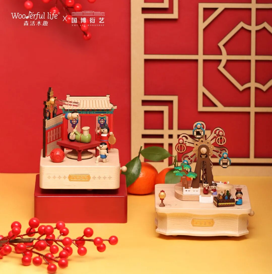 国博“新年礼”所还原的不仅是新春之初的习俗,春节年俗中最后一个重要节令——元宵节也不会落下,可爱风格的元宵行乐音乐铃就正好戳中人心,产品以《元宵行乐图》中的杂技表演、游园喜乐场景为原型,加入现代元素,听觉与视觉双重叠加,古今的喜乐在这一刻相通。