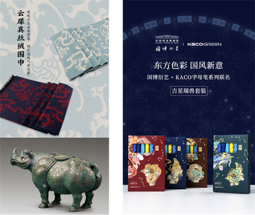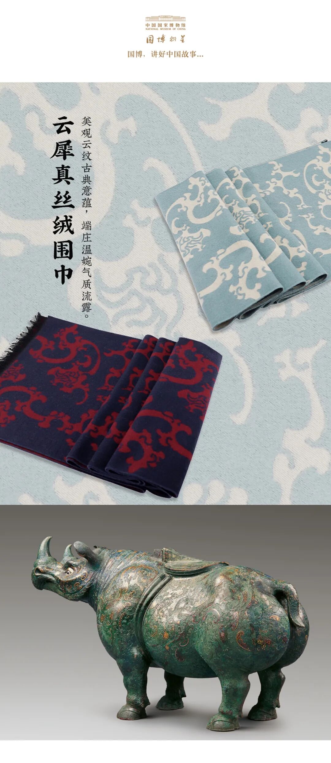 此外,还有以错金银云纹青铜犀尊为灵感的云犀真丝绒围巾,以“天文图”碑拓片为设计元素的KACO字母签字笔书签套装、保温杯加热鼠标垫套装,虎符、心中有数、中华宝藏口罩等等都是新年里不可错过来自中国国家博物馆的宝藏礼赠。