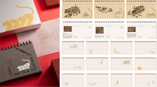 除了日历,国博今年还首次推出了月历套装,以馆藏文物“阳陵虎符”和“宅院画像砖”、“酿酒画像砖”、“市楼画像砖”等多件画像砖为设计灵感,再现古代人民的生活百态与精神面貌。