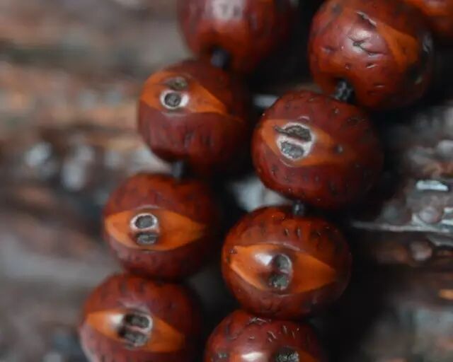 由于凤眼并不适应西藏干燥的气候,如果要用其作为念珠,那么人们就需要用酥油盘之了,其目的就是为了防止珠子开裂。打个比方,南方人来北方不适应,因为北方干燥的原因,皮肤会发紧,这时候就需要给皮肤补水了。![]()