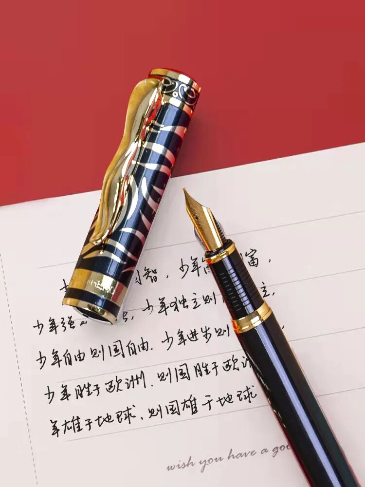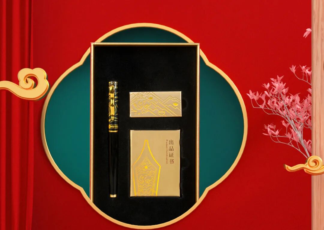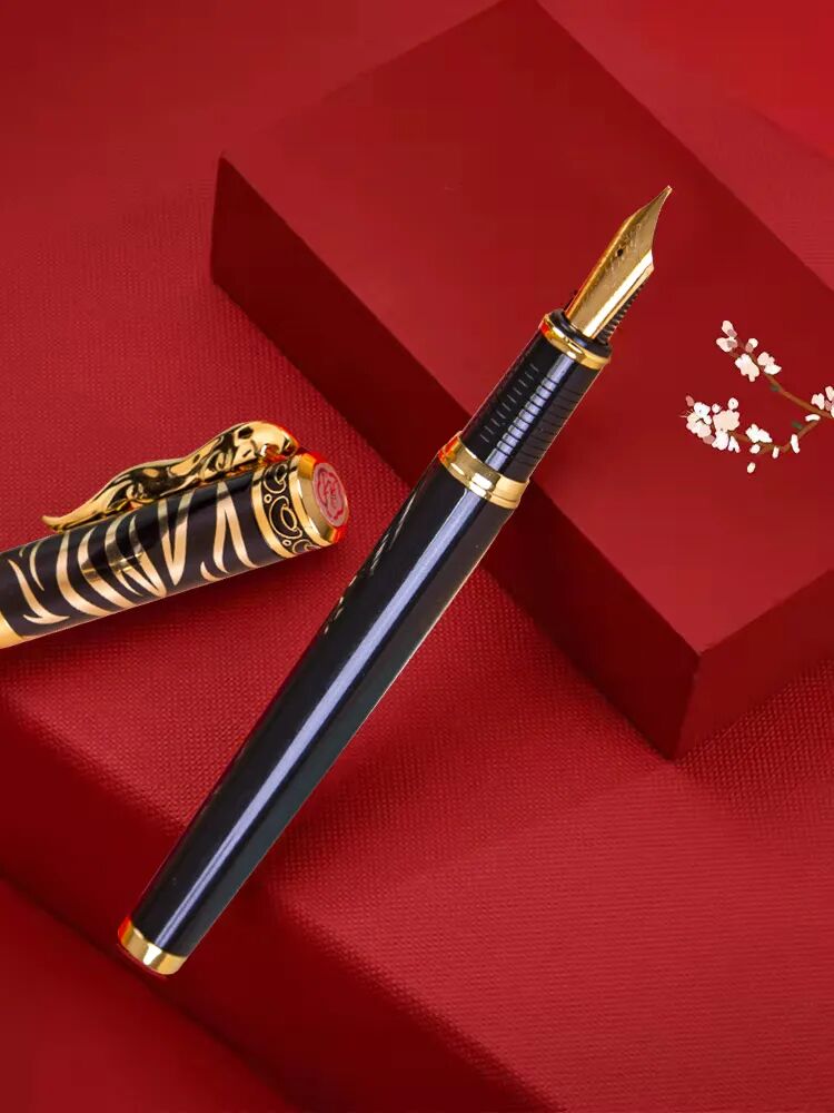 钢笔采用英雄经典笔形,端庄稳重的黑金配色,结合招财旺运的瑞虎祥纹,为新春添喜庆,为国民献佳礼。