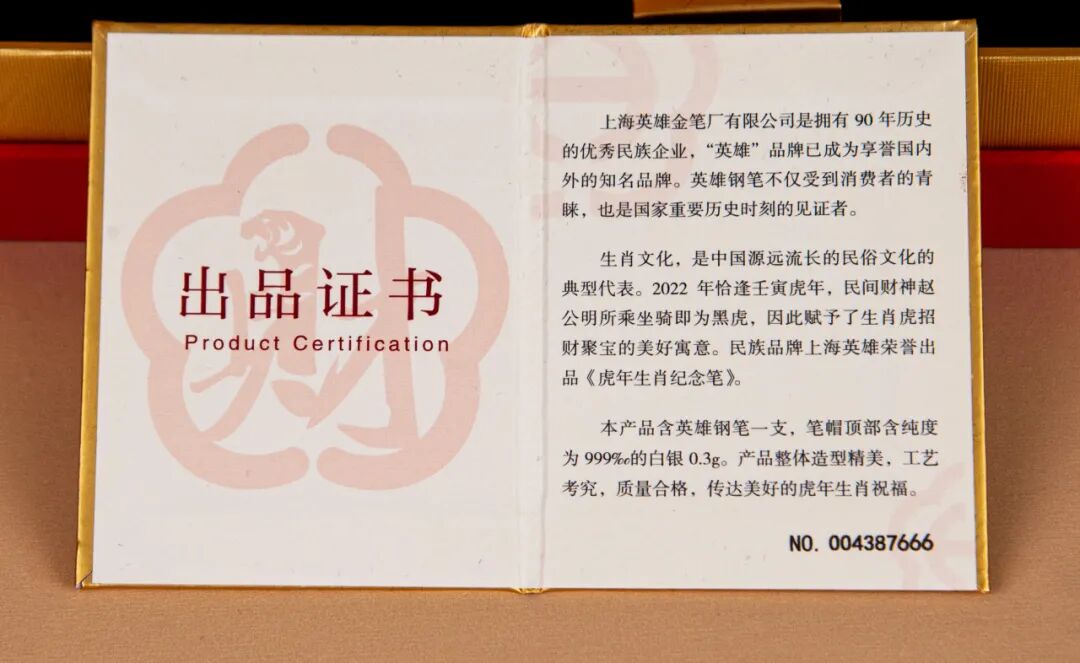 2022年是壬寅虎年,这款钢笔正是以生肖“虎”的寓意为主题,以英雄钢笔的经典笔型结合虎年生肖元素设计演绎,恭迎寅虎乾坤啸,诚愿福财永相随。