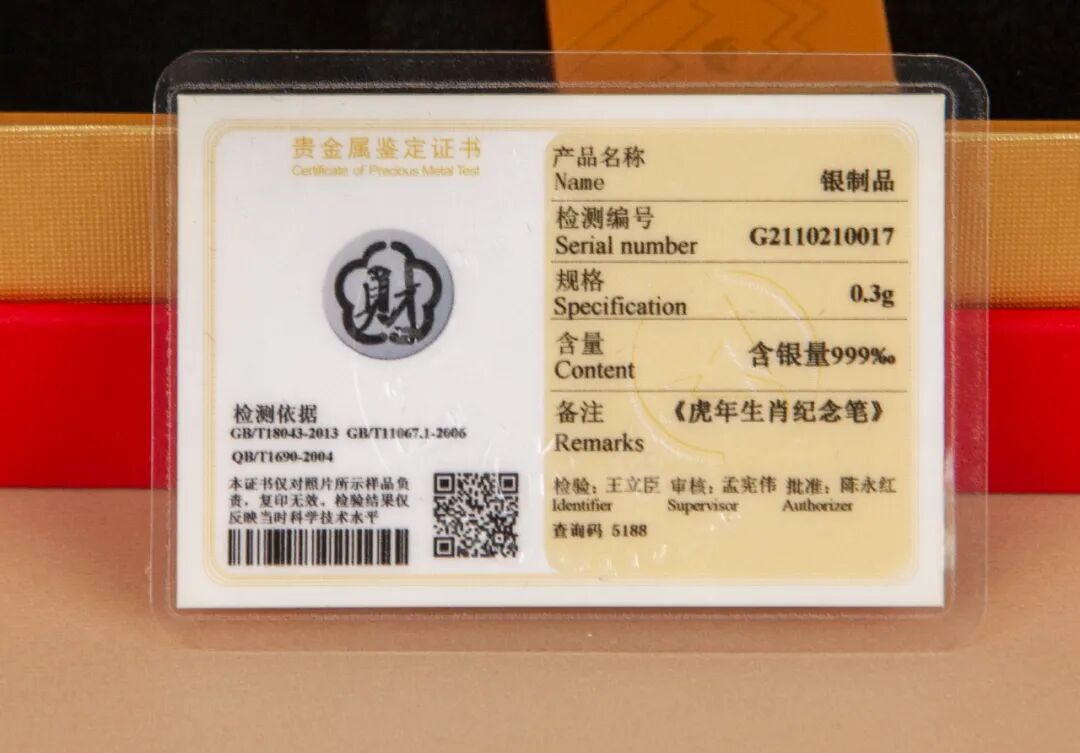 更有999足银“财”字作笔帽顶,外层环绕梅花,寓意虎年开运,财源广进。