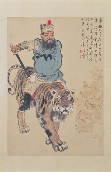 民间财神赵公明,左手执银鞭,右手托元宝,身骑老虎,统领五路财神,掌管世间财富。