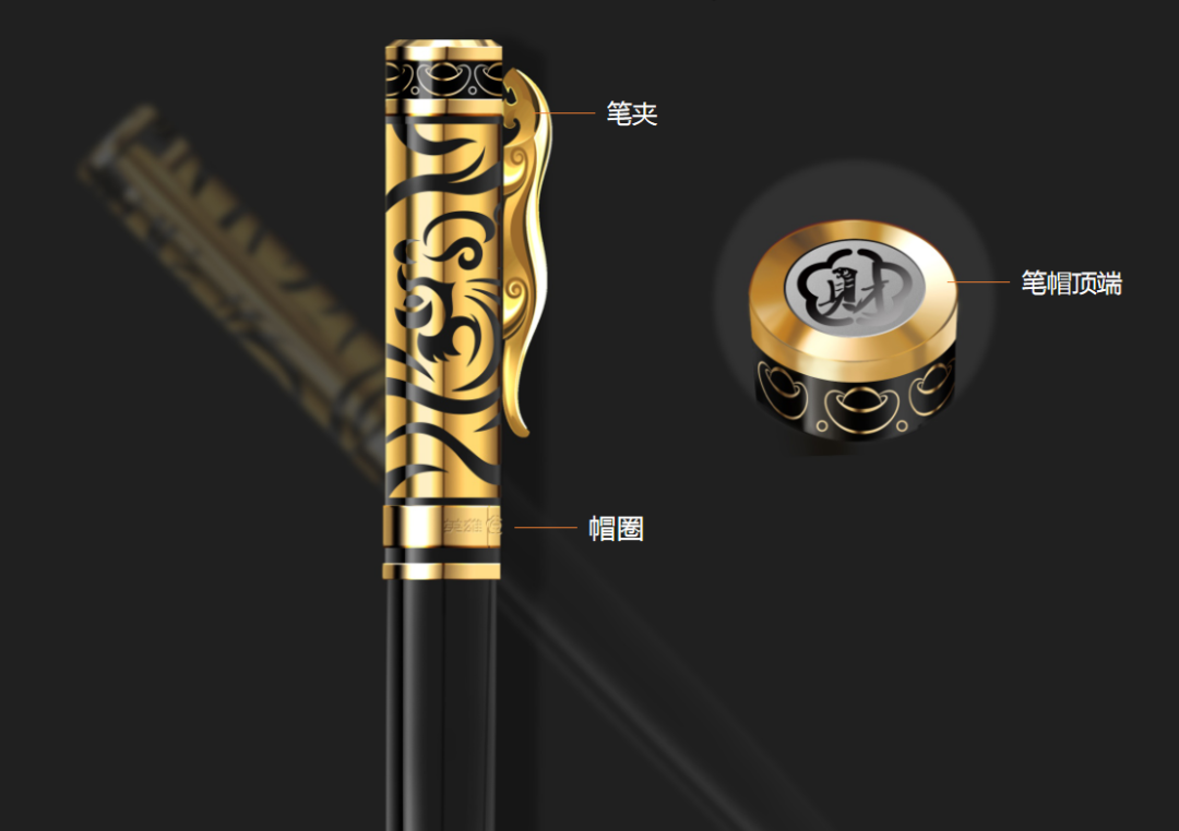 一侧延展出虎符型”精巧笔夹,庄严大气,出手便是与众不同。