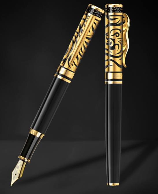 钢笔整体以黑金为主色调,黑色神秘高贵,金色富丽堂皇,两者结合,低调奢华,内涵隽永。