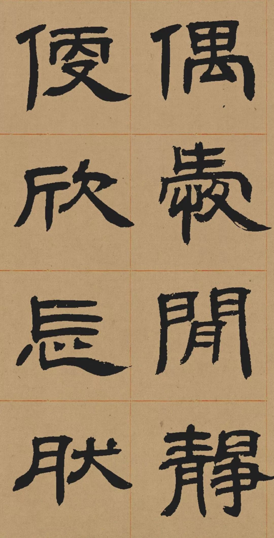 这本隶书册,作于嘉庆己未(1799)年。体势值由雅驯而趋开张,笔意由温润而趋劲豪,气格宏阔而无纵横习气。是一件由厚积走向勃发之际的别致的佳作,多堪玩味。