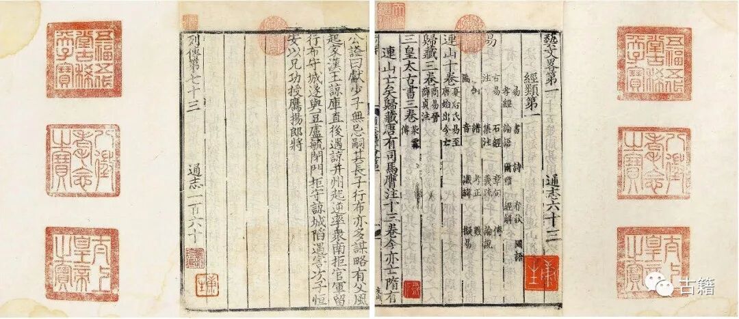 实际上,“天禄琳琅”早已成为清代皇室典藏珍籍之代称,毕竟是贵重图书,其所藏每一册书都钤有多枚乾隆御玺,可视作皇家藏书之象徵。可以想象的是宫廷大内之门禁森严,也不是什么臣工们都可直达之处。然而清末民初的战乱和改朝换代导致清宫藏书不断外流,至1925年清室善后委员会点查故宫物品时,原本664部的“天禄琳琅”后编藏书只剩下311部,留在宫内的这批书几经辗转,如今收藏在台北“故宫博物院”。其馀353部中有176部见于记载,是被溥仪通过赏赐溥杰的方式流出皇宫。流失宫外的藏书,如今散藏在海内外六十个公私藏家,以国家图书馆和辽宁省图书馆所藏为最多,民间也有不少收藏。