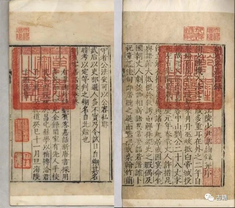 至于原本装帧之信息,则录其书衣、书签、函套等,以见清室书籍装帧之特殊风格。我特别在意及欣赏的就是此书中版本考证的部分,正如刘蔷在“凡例”中所云:“版本考证。节录序跋中涉及书籍编纂、刊刻之文字,并目录、书志及相关研究资料,每书约叙数行,略呈版刻崖略。对照《天禄琳琅书目后编》之记载,正其错讹,补其无考,辩其真伪。特别揭示版本作伪痕蹟,辨析阐明《天禄琳琅书目后编》致误原因。”