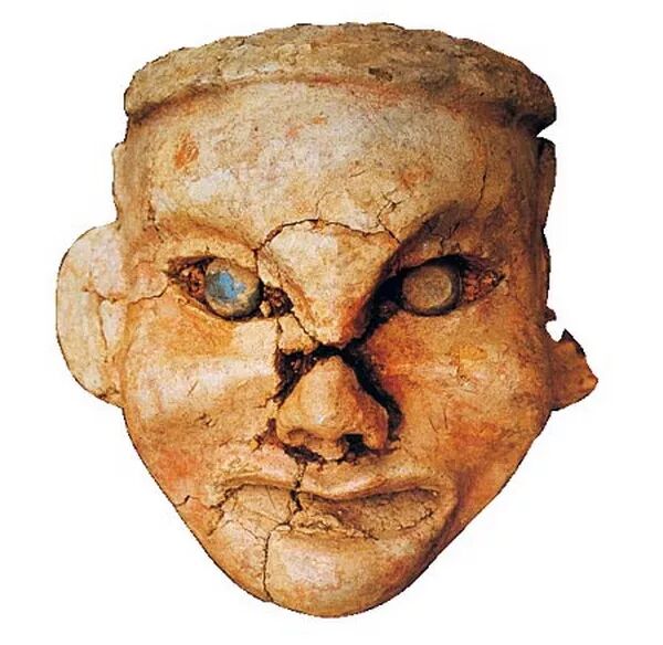 女神陶塑头部。媒体说,这就是老祖母“女娲”。问题在于:女娲是中华民族的创世女神,最少有一万年以上的历史,她怎么会与五千年以后的孙子,黄帝在一起?