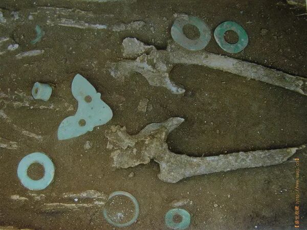 鳖或者龟,握玉,或者是死者生前的法器。《山海经》曾记述北方有一“雨师妾”国,其人黑面人身,两手各操一龟。此外还记载北方有一玄股国,腿是黑的。本博以为,五、六千年前,中国东北生活有一皮肤较黑的部落,当然不会像埃塞俄比亚人那么黑,但至少像印度人或者印地安人那样,是深棕色的。要不然,我们的祖先凭什么说“北方色黑”?雨师妾,或云是风伯或者河伯之妻,雨神也,或云是雨神的妻子、女弟子。红山文化五千年前突然消失,竟没有留下痕迹,龙山文化没有继承他,夏文化也没有继承他,只有商王朝和后来的周王朝,继承了变形的蟠龙。红山玉龙本是猪形,夏人的祖先是鱼龙或蛇龙,总之,中国的文化是多元的,龙也是多源的,这是民族和文化熔合的结果。