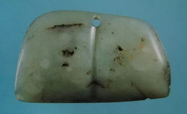 牛河梁第二地点一号冢第9号墓出土勾云形玉佩与石钺