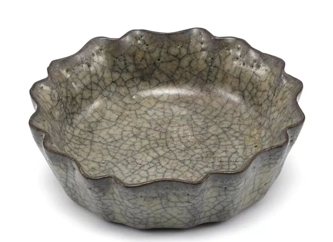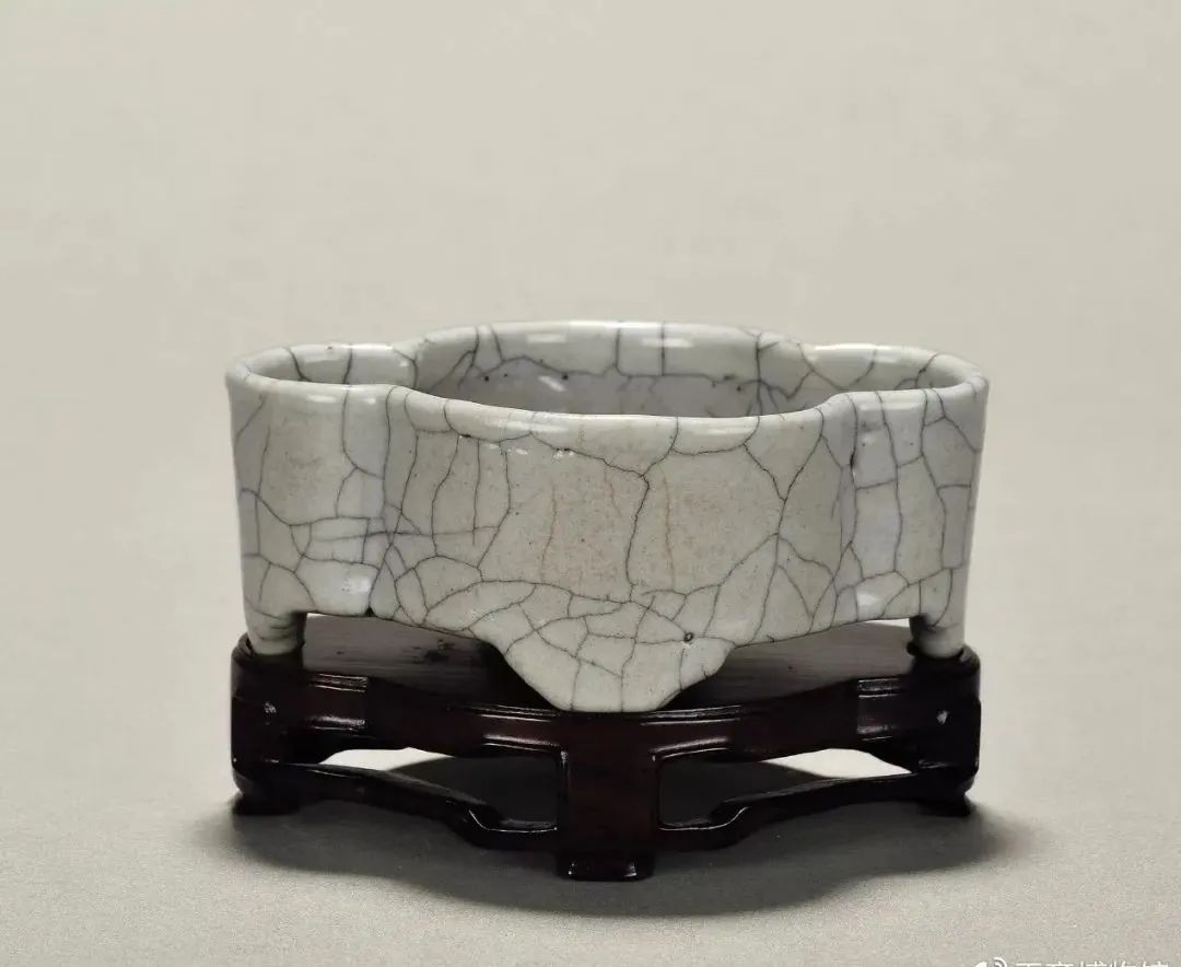 哥窑葵花式洗为瓷质文房用器中的名品,数百年来备受文人雅士们的赞赏。晚明鉴赏大家文震亨于其名著《长物志》中专门提及:“(笔洗)陶者有:官、哥葵花洗、磬口洗、四卷荷叶洗、卷口蔗段洗。”可见彼时哥窑葵花洗深得士人推崇。