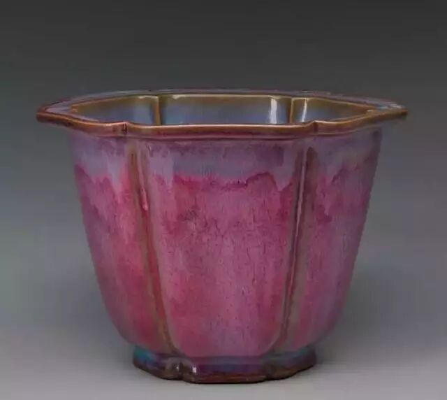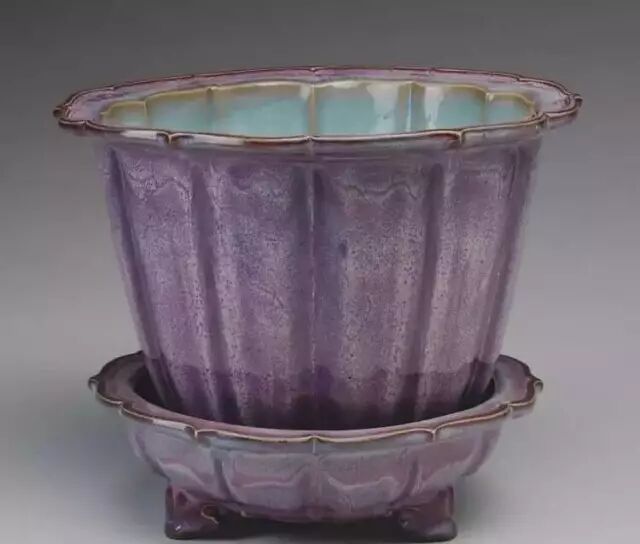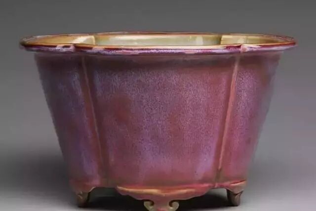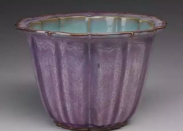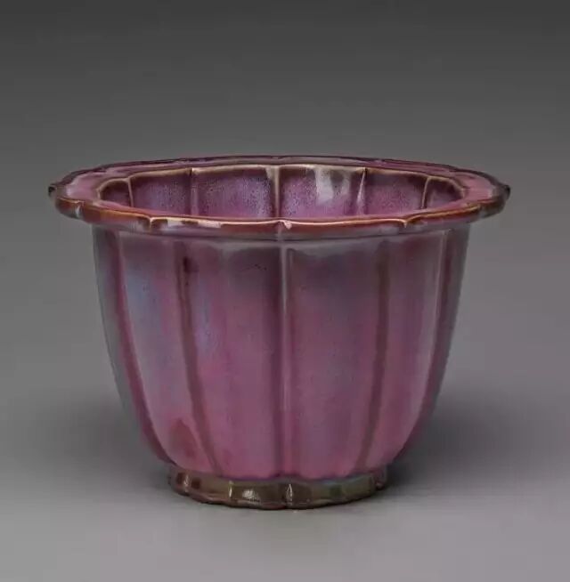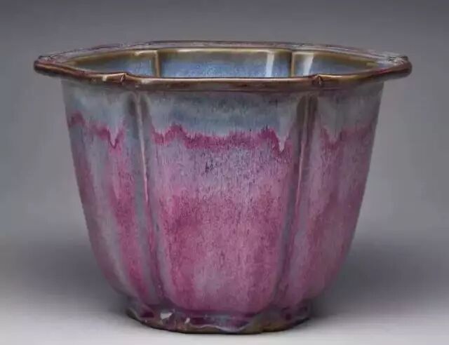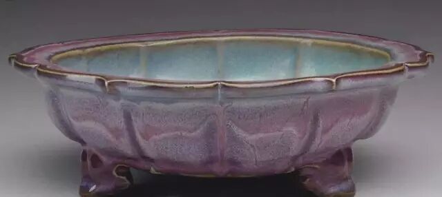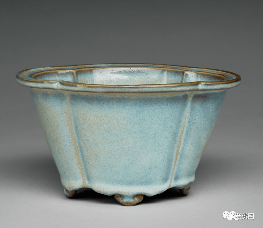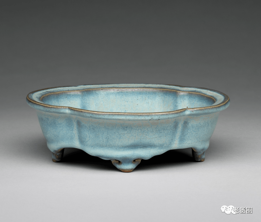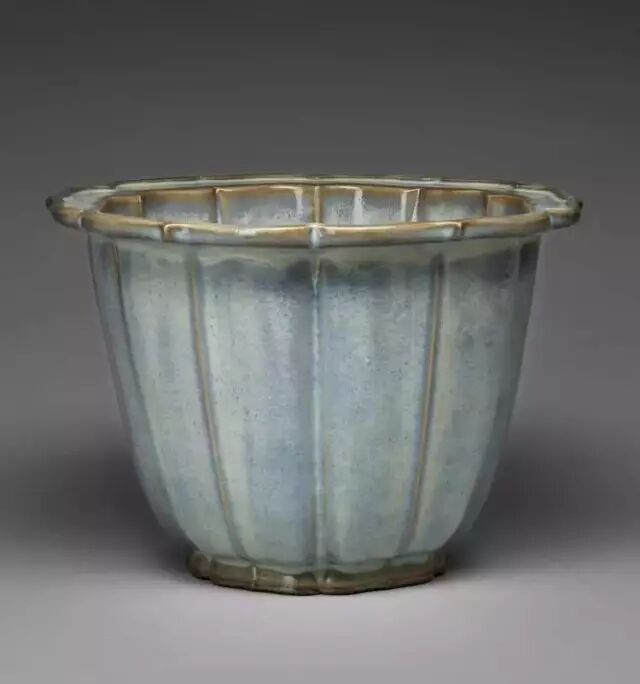 明 钧窑天蓝釉海棠式花盆四(正面) 美国哈佛艺术博物馆藏