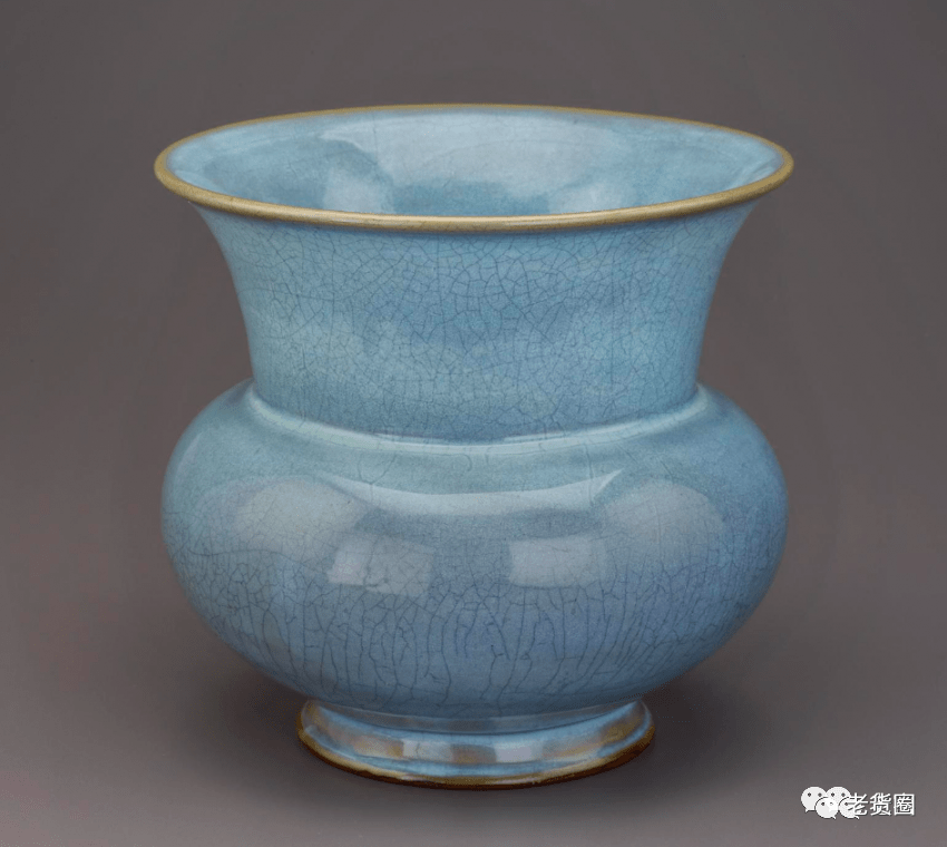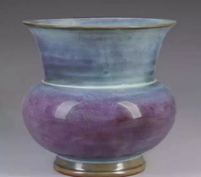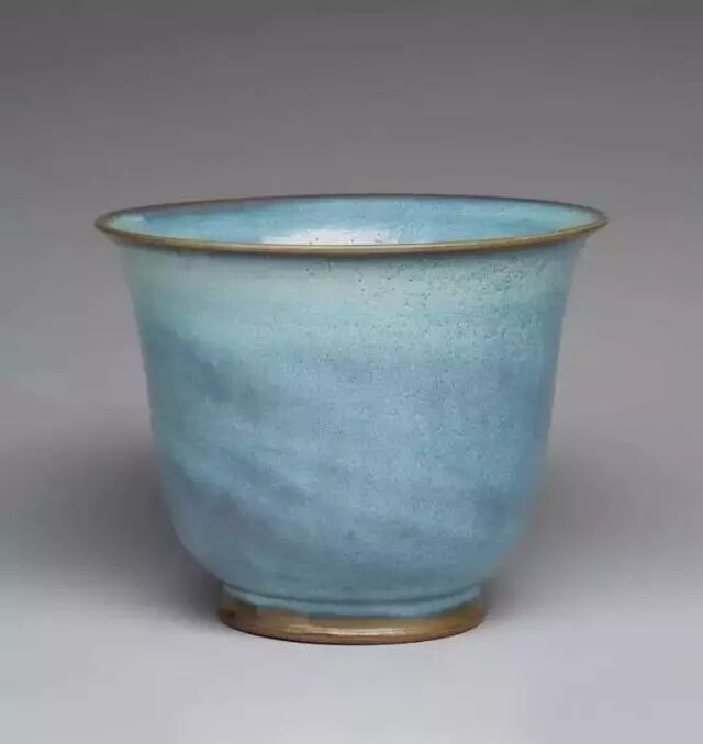 明 钧窑天蓝釉渣斗式花盆(正面) 美国哈佛艺术博物馆藏