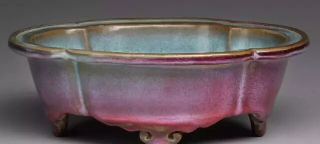 明 钧窑天蓝釉海棠式花盆三(内部) 美国哈佛艺术博物馆藏