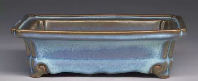 明 钧窑天蓝釉长方形花盆(正面) 美国哈佛艺术博物馆藏