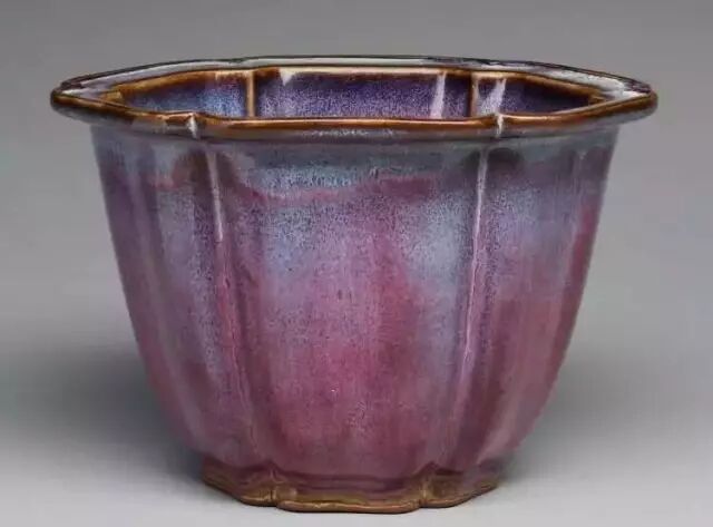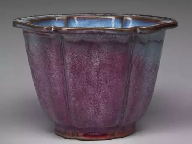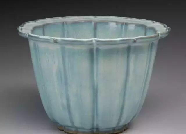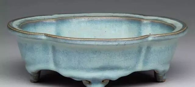 明 钧窑天蓝釉海棠式花盆三(正面) 美国哈佛艺术博物馆藏