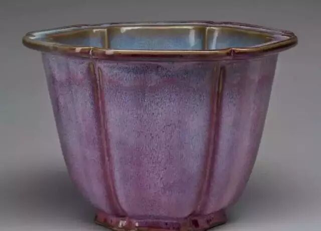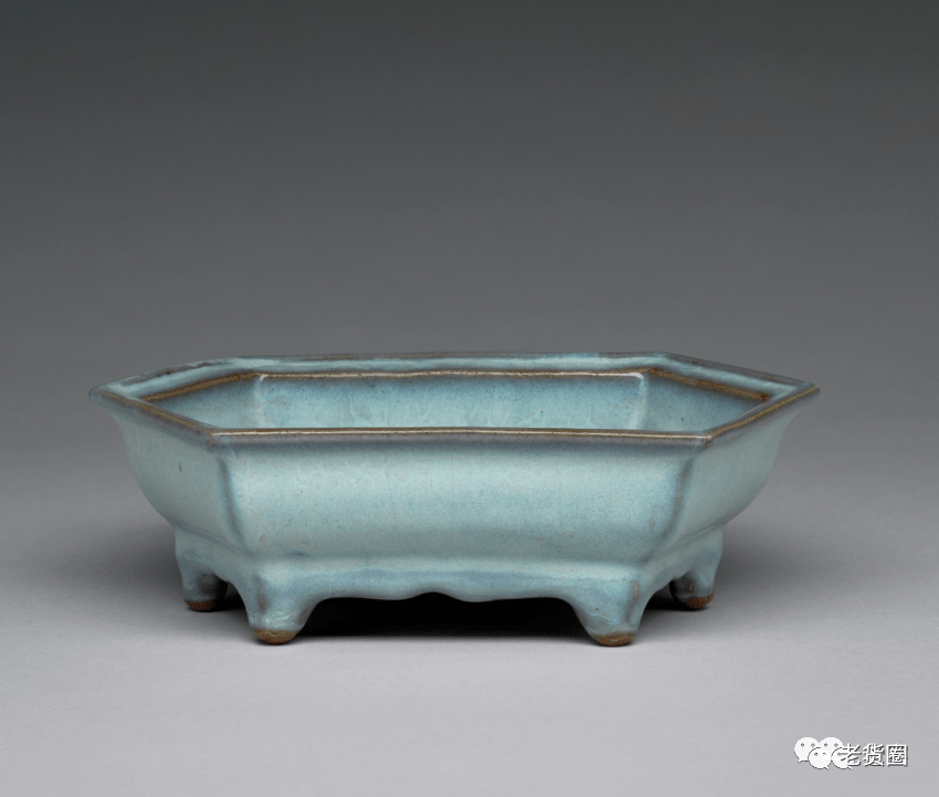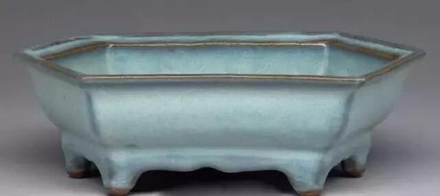 明 钧窑天蓝釉六边形花盆二(内部) 美国哈佛艺术博物馆藏