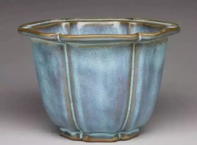 明 钧窑天蓝釉六边形花盆二(正面) 美国哈佛艺术博物馆藏