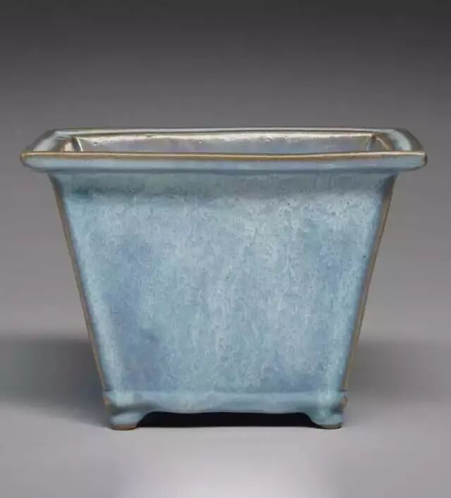 明 钧窑天蓝釉四方花盆(正面) 美国哈佛艺术博物馆藏