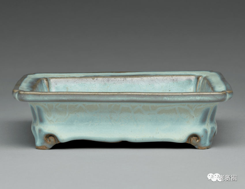 明 钧窑天蓝釉长方形花盆(内部) 美国哈佛艺术博物馆藏