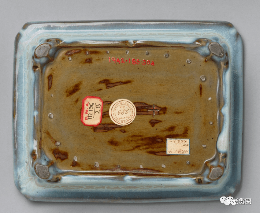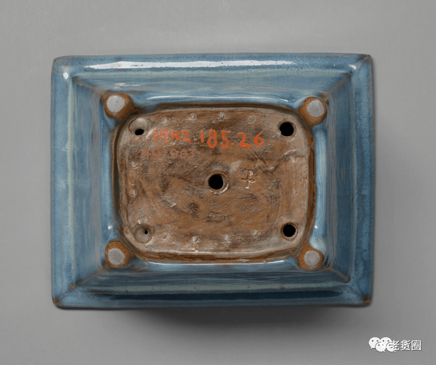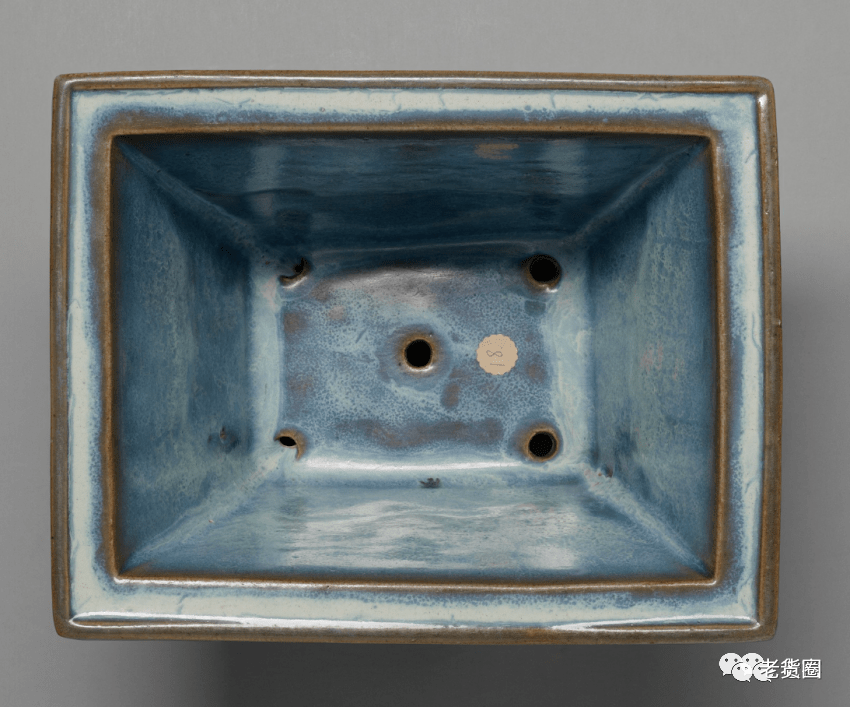 明 钧窑天蓝釉长方形花盆(底部) 美国哈佛艺术博物馆藏