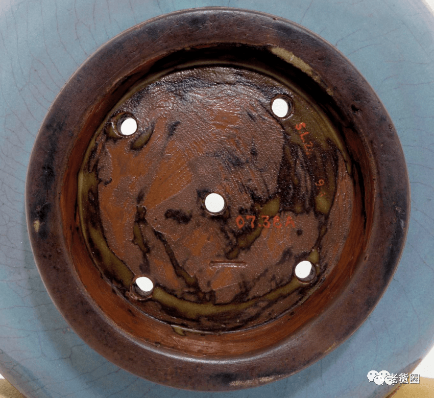 明 钧窑天蓝釉渣斗式花盆(底部) 美国哈佛艺术博物馆藏