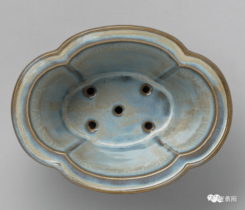 明 钧窑天蓝釉海棠式花盆四(内部) 美国哈佛艺术博物馆藏
