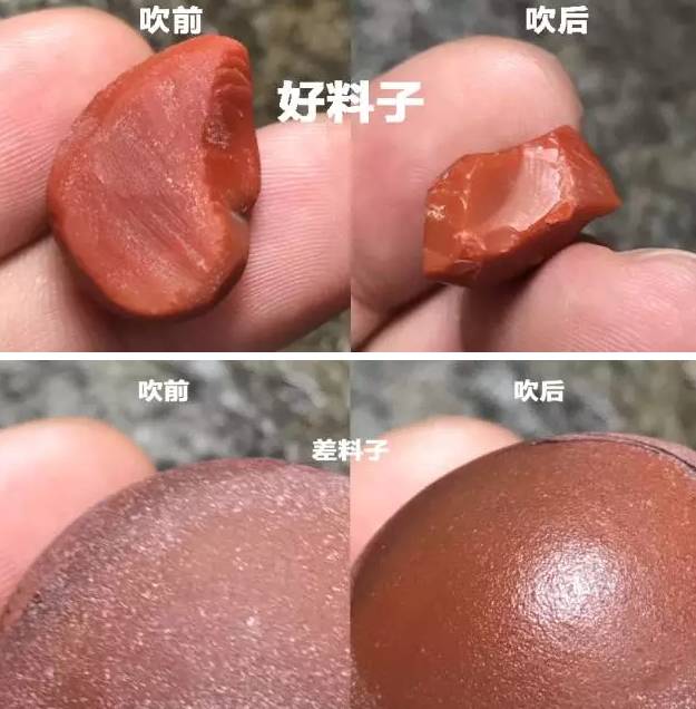 买之前用嘴吹一吹,好料子遇水汽很润。