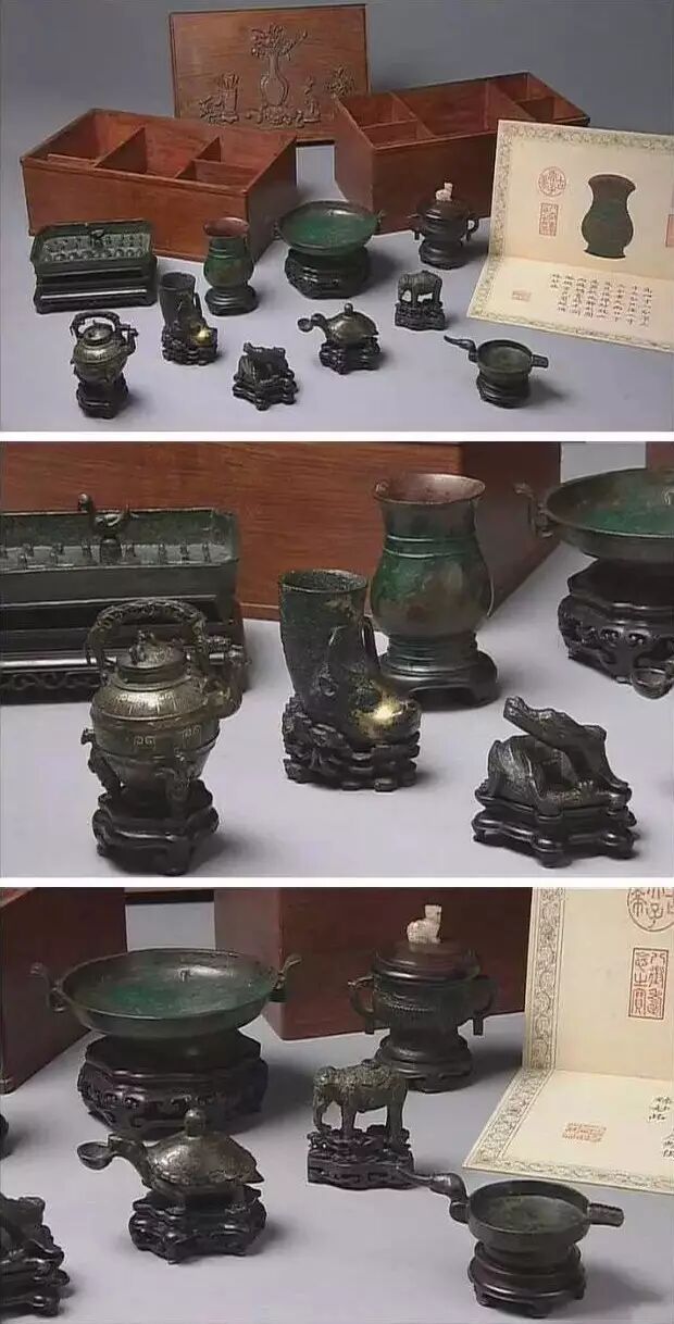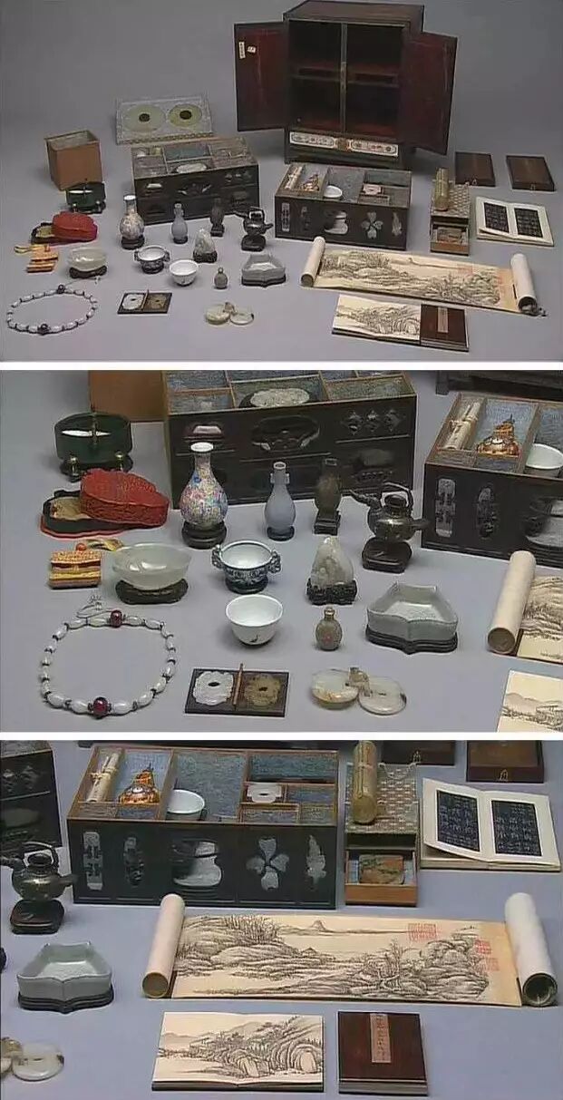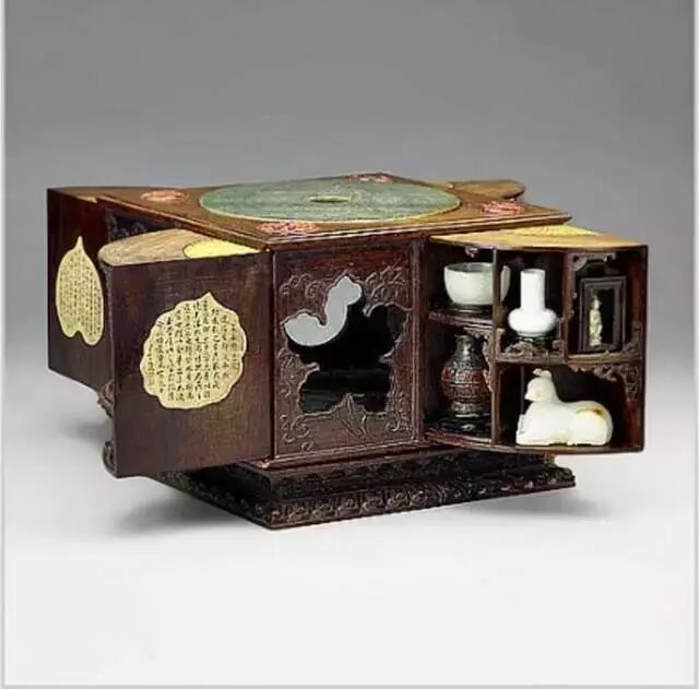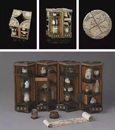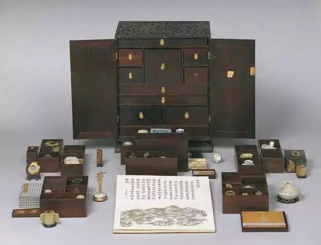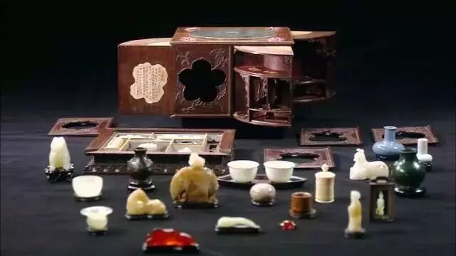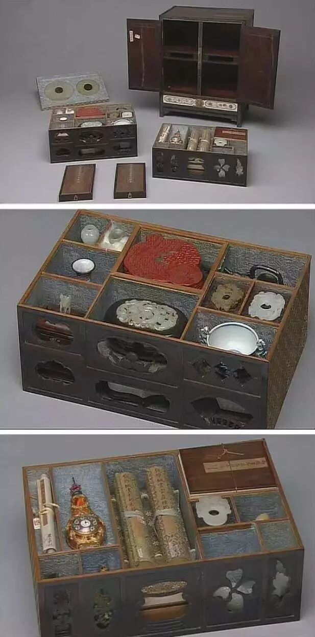 这对古兽的尺寸并不大, 高度只有5.3cm 。我们认为这对是清代宫廷工艺,给皇帝玩的。可是很多人会说,怎么这么小呢?又不是田黄,皇帝玩的用料要大才奢侈啊。错了。小才好玩啊,盈盈一握,不玩的时候可以收起来啊,进退自如。下面我们就来看看皇帝的玩具箱,有各种好玩的宝贝,堪称包罗万象,应有尽有,雅致非凡。在紫禁城的早年岁月里,宫殿里并没有多宝格的身影。它是自从清代才兴起,并逐渐流行的家具品种,在紫禁城的宫殿里多宝格是最常见的陈设。多宝格在档案记载中,制作量也是很大的。多宝格大多为常规尺寸,但也有可以覆盖一面墙壁的大型多宝格,还有可以摆放在桌案上或悬挂在墙壁上的袖珍型多宝格。从清宫《内务府造办处活计清档》来看,收藏在宫廷中的珍玩会被分以等级,头等收于“多宝格”,次等或更次等则置于“百什件”和“万宝箱”中。多宝格所涵内容之丰富,可谓“上下五千年,东西十万里”皆在其中。皇帝对于多宝格兴趣浓厚,不仅是因为收藏其中的珍玩价值连城,更重要的是,多宝格的设计将一个“巧”字发挥得淋漓尽致。这件“竹丝缠枝番莲多宝阁圆盒”利用机轴原理,将圆筒形盒分成四个扇形。180°展开可成为一字形小屏风,360°翻转後可成为一个正方形筒状。每个扇形内又分成许多格层,其中圆柱形格层不但再分成数格,而且可以360°旋转。工匠们通过精确计算体积,将每个多宝格格内做出横竖不等、高低不齐、参差错落的一个个空间。打开来看,不同的空间摆放着大小不同的珍玩,严丝合缝,不浪费一丝空间;一些开合的机关被藏在物件的下层,如同游戏一样,只有把东西拿起来,才能“破关”。多宝格关闭时是一件再规矩不过的盒子,而当你打开的时候,它就像一个魔法盒,到处隐藏着令人意想不到的发现和惊喜。这件小巧的多宝格打开后有对称整齐又大小不同的抽屉11个,文物共计56件,这常常引发观者惊叹。大部分器物的尺寸都小于10厘米,既有历朝历代的玉器、书画、珐琅器、铜器,也有来自日本和西洋的舶来品。多宝格具有复杂的组合逻辑,必须耐心摸索,才能一探究竟,常有寻寻觅觅扑朔迷离的趣味。往往一件多宝阁,箱盖中有盒,盒中有匣,匣中又有屉,隐隐约约,辗转曲折,有时一个转钮,便见门,门之后,另有一番天地。据说,有些设计巧妙的多宝格,让人即使看到格中、抽屉里或隔板旁有宝物,也因找不到机关而拿不到。且每一件器物都有固定的位置,皇帝要一件件拿出来鉴赏,再一一复归原位,前后都要花费不少时间。这件“紫檀云龙纹多宝格方盒”内藏47件珍玩。打开方盒,顶层托盘装有从春秋战国到辽、金、明、清时期的玉器。移开这个托盘,则可见八九个大小不一的盒子,盒子内除了历朝历代的瓷碗、玉瓶、书画等,还有来自日本的莳绘盒。值得一提的是,托盘里选的玉器都是片状的,托盘底部按照每一个玉器的外部轮廓,分别挖出凹槽。这样,玉器可以完好紧密、恰到好处地放进去,大大减少了可能因晃动造成的损伤几率。乾隆皇帝对多宝格兴趣浓厚,一些珍玩匣的设计、摆放过程,他几乎全程参与。《乾隆帝是一是二图轴》郎世宁 作,表现了乾隆皇帝鉴赏古物的情景。他曾要求造办处每隔五天就要将还没有完成、正在装配的多宝格拿给他看。他可以说是中国最大的玩主。虽然多宝格的诞生之初,只是为了取悦皇帝,但是在乾隆的推行和倡导下,藏品被分门别类,贴注标签,建立档案,这何尝不是开现代博物馆的先河。在台北故宫专家将乾隆皇帝戏称为“故宫博物院的第一任院长”。以当代的眼光来看,乾隆拥有多元而丰富的艺术品位,可以说是一位卓而不群的收藏家及鉴赏家。乾隆多宝格,犹如紫禁城这座巨大文物宝库的缩影,有着等同于小型博物馆的意义。注:本文转自网络,不代表本平台立场,仅供读者参考,著作权属归原创者所有,如涉及版权等问题,请作者添加小编微信(guwannadianshi-6)与我们联系,我们将在第一时间处理,感谢!
