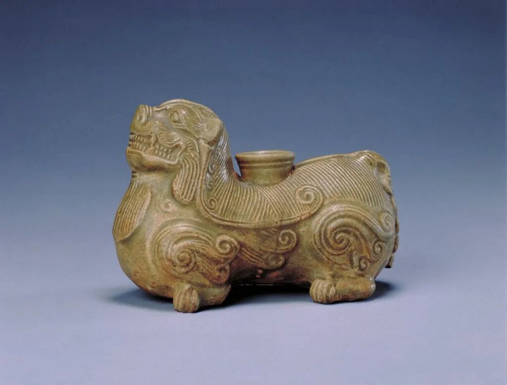 《梁书》在兴修百戏的记载中也提到辟邪使,而从晋代出土文物青釉狮形瓷水注称之为“辟邪”的形象来看,辟邪就是狮子,说明不论是后魏还是梁代,舞狮子已正式列入百戏表演的行列。