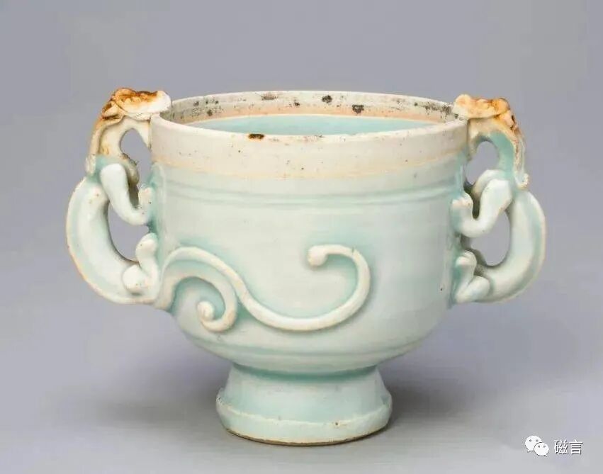 南宋至元 湖田窑青白瓷螭耳杯 美国芝加哥博物馆藏
