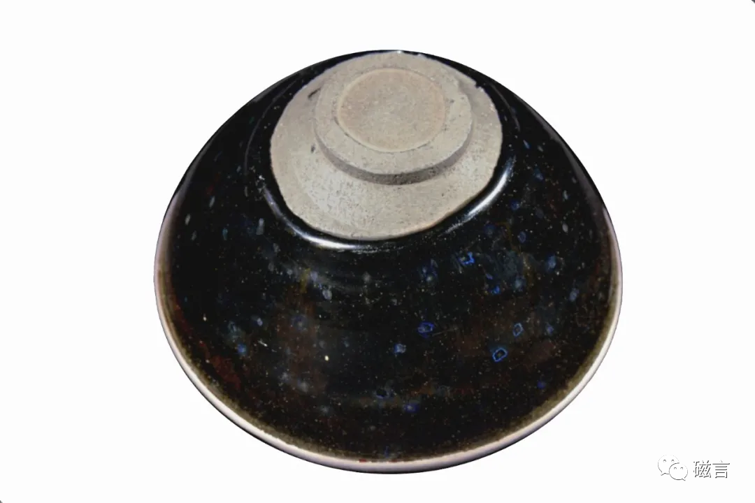 其器型为束口,深腹,浅挖足,施黑釉绀黑,施釉不及底,略带芒口。