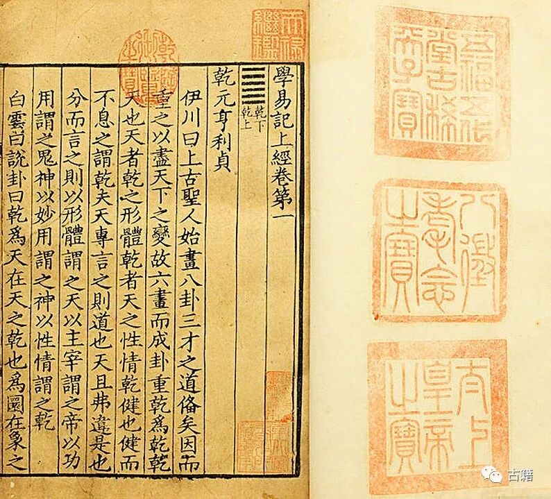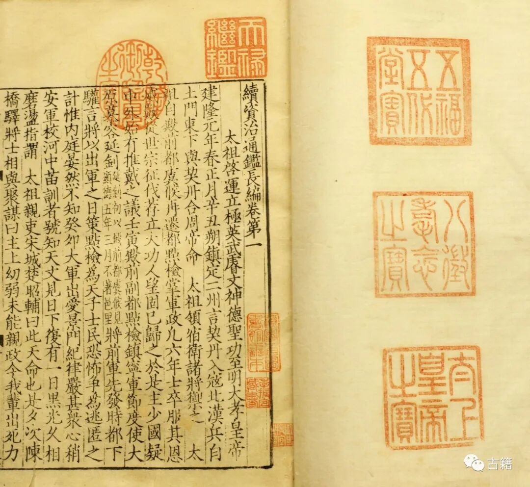 嘉庆至清末期的“天禄琳琅”三编,比照后编书钤盖“嘉庆御览之宝”朱文椭圆印、“天禄继鉴”白文方印和“天禄琳琅”朱文小方印。