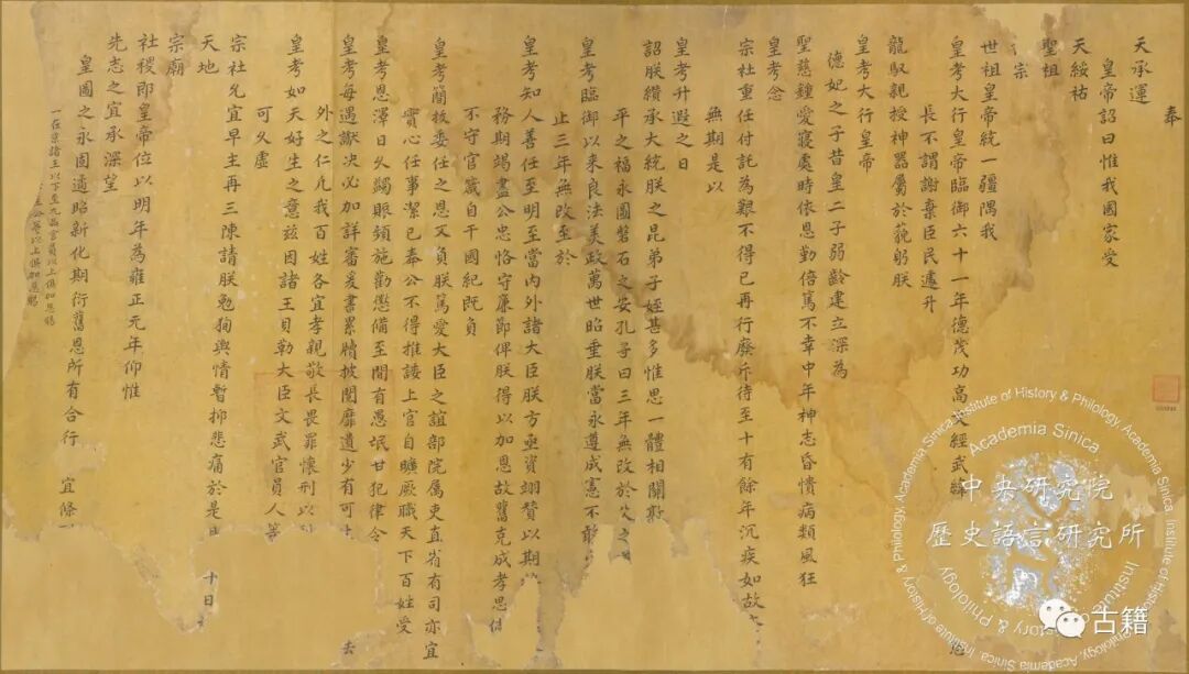 《礼部知会议注咨》……五月二十三日丑时,大行皇太后升遐……所颁《遗诰》,差官送往各省及朝鲜国……雍正元年五月二十三日奏……雍正元年六月初八日。