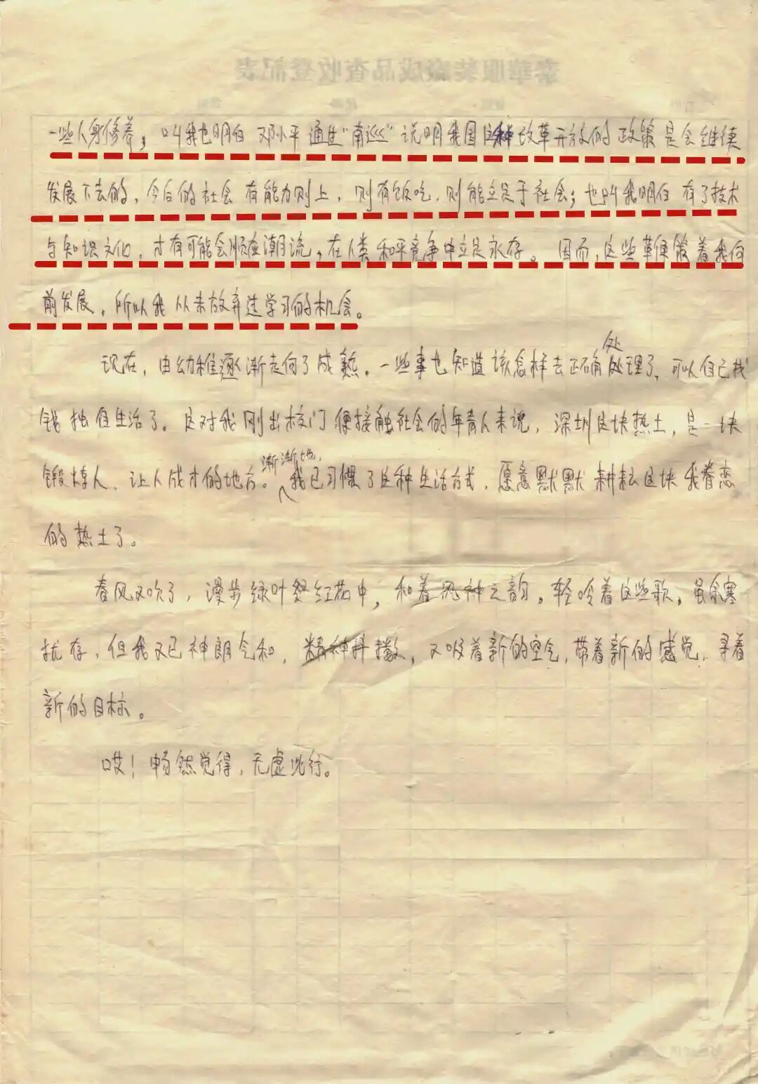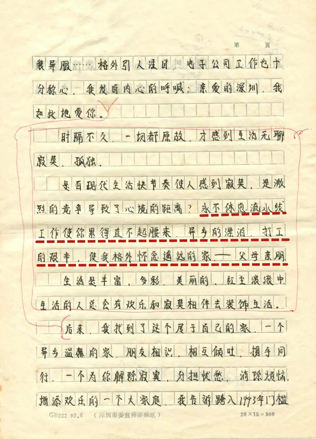 虽然在岁月流逝的侵蚀下,这些留存至今的信件稿纸已经泛黄,笔写字体的墨迹也微微晕开,但这一封封饱含来深建设者的真挚感情,读之令人感同身受、潸然泪下的家书,成为深圳改革开放发展历程篇章中真切感人的温情一页。