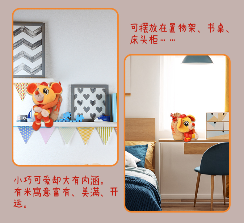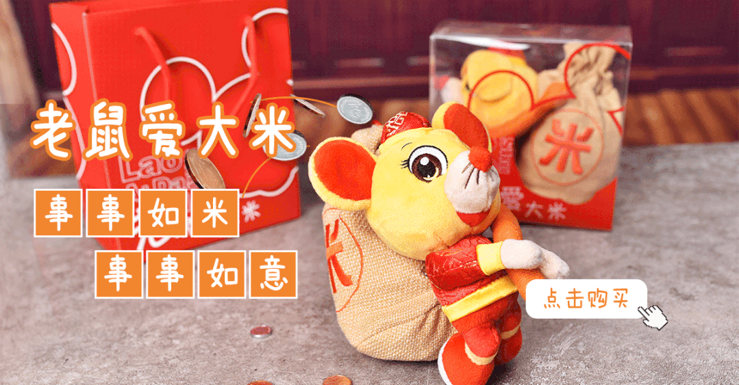 设计也特别可爱,拜年鼠的造型还有这毛茸茸的手感,绝对会俘获小朋友们的心~而且新年送“老鼠爱大米”寓意孩子拥有“鼠不尽的快乐”!