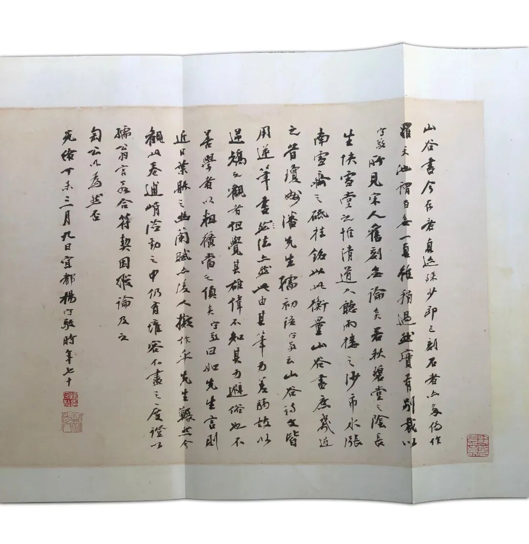 山谷大字行书与狂草,历来褒贬不一,毁誉参半,几有天壤之别。而对其小字行书,则少有差评。罗天池在跋中有云:“字小于钱,力大如虎,精微深远,纯以神行,直与颜平原《祭叔侄》《论坐》各草炳耀日星。”徐邦达先生亦评史氏墓志铭稿云“谨紧奇峭,可说是人书俱老”。